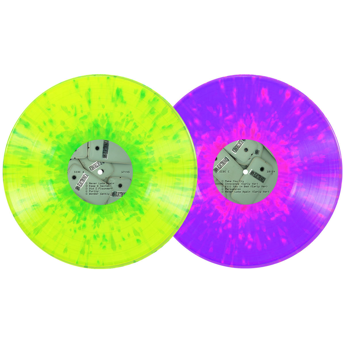 100% Electronica now available on 5-year anniversary 2xLP with all 9 bonus tracks. The phone from the cover art, along with 17 identical phones will be given away randomly to those who preorder, like golden tickets. The identity of the true phone will remain a mystery forever. Every copy includes all 4 of the original 100% Electronica stickers and a reproduction of the original 8"x11" flyer used to advertise the record on telephone poles in New York City.